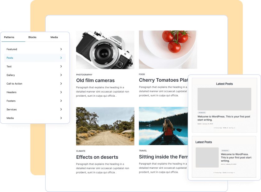 Dostosuj cały układ strony internetowej, w tym nagłówek, stopkę i wszystkie inne części szablonu. Dzięki FSE możemy tworzyć i edytować szablony dla całej swojej strony internetowej, w tym pojedynczych postów, stron archiwalnych i niestandardowych typów postów.